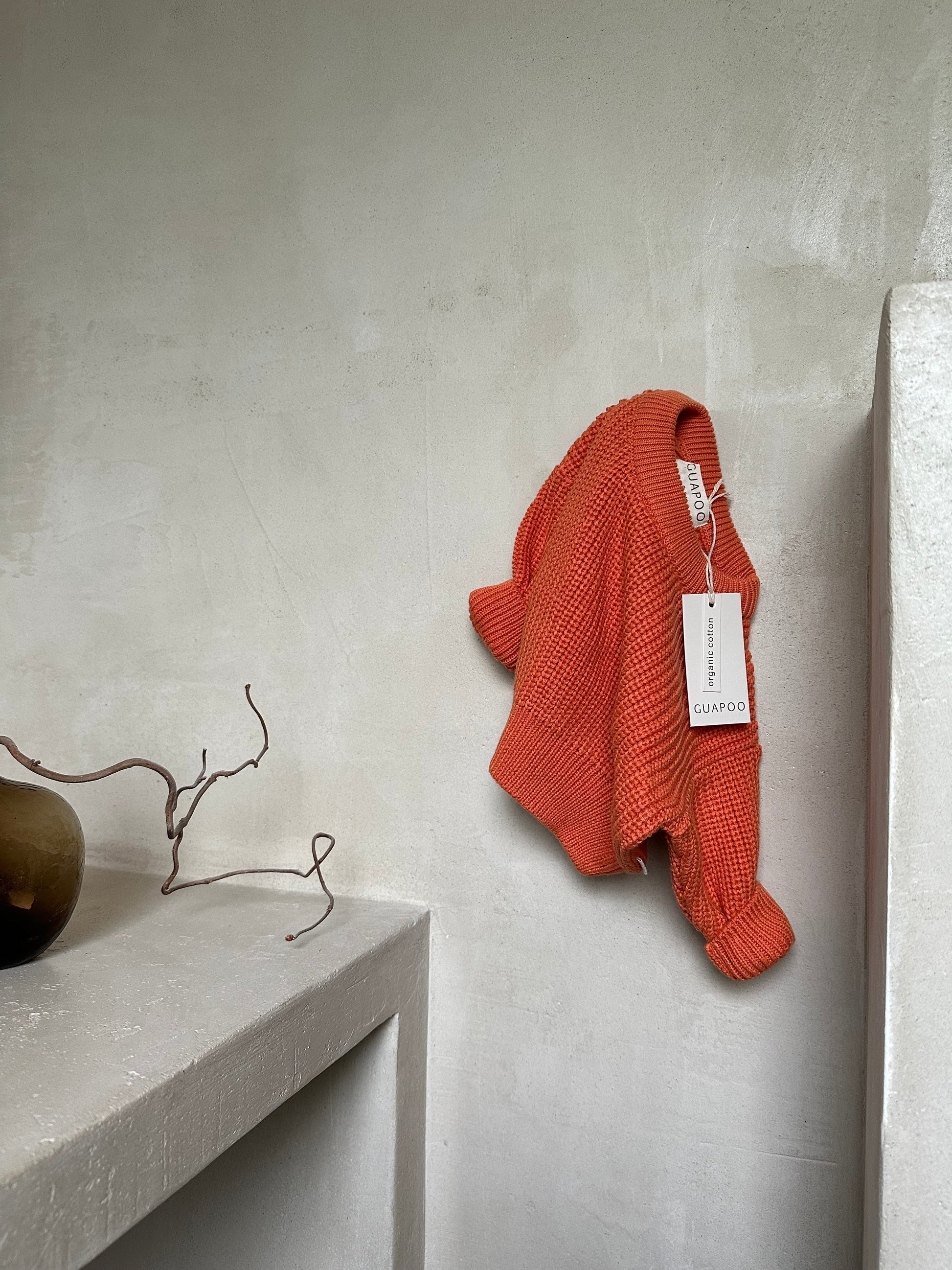 Der Chunky Sweater Sunset aus 100 % Baumwolle verwöhnt die zarte Kinderhaut mit weicher, angenehmer Wärme. In einer wunderschönen, leuchtenden Farbe gestrickt, macht er jedes Outfit zum echten Hingucker. Stylisch und bequem lädt er zum Spielen und Entdecken ein – der perfekte Begleiter für kleine Abenteuer!