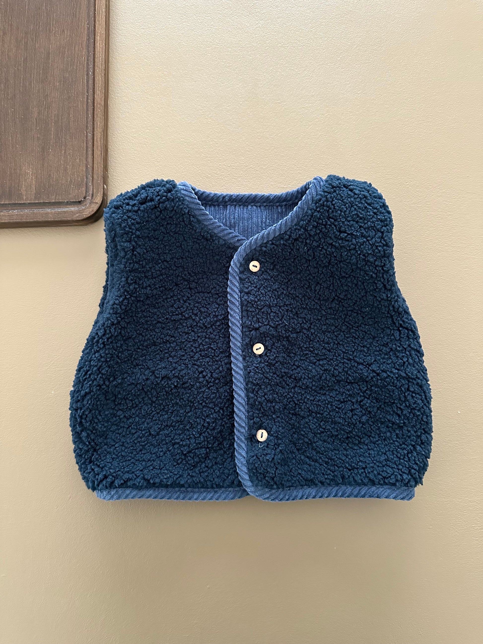 Diese wendbare Kinderweste kombiniert weichen Teddy-Stoff auf der einen mit charmantem Cord auf der anderen Seite. So können kleine Abenteurer je nach Lust und Laune zwischen cosy Kuschel-Feeling und stylischem Look wählen – praktisch, warm und immer ein Hingucker!