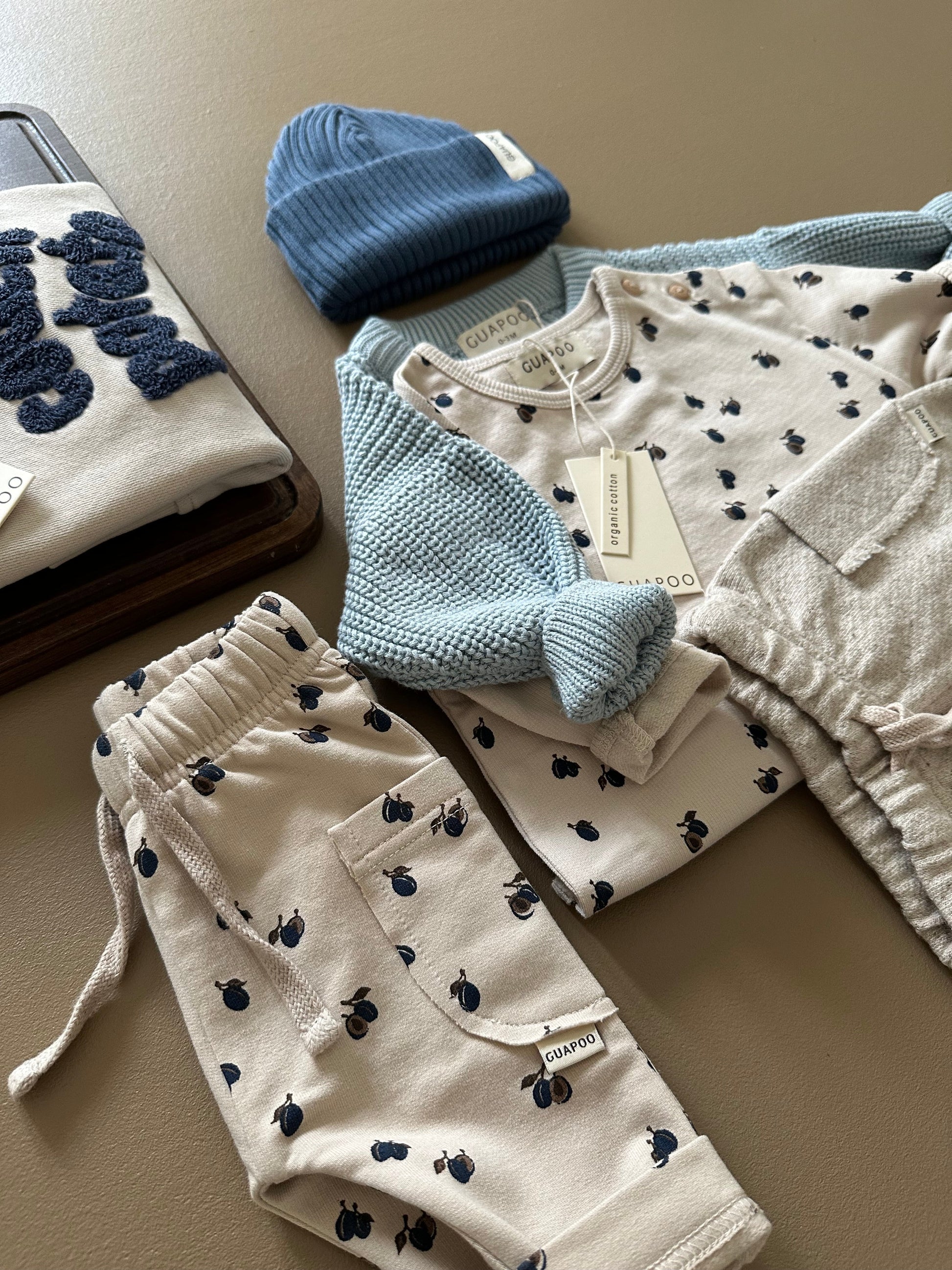 Entdecke die stylischen LEGGINGS MINI PLUMS mit Seitentaschen und einem verspielten Pflaumenprint, die deinen Alltag mit Komfort und Charme bereichern.Aussen sweat und innen angeraut kuschelig. Hergestellt aus weicher, GOTS-zertifizierter Baumwolle, bieten sie ein gemütliches Tragegefühl, das dich den ganzen Tag begleitet. Perfekt für alle, die Mode und Bequemlichkeit lieben! Auch als Set mit passenden Longsleeve erhältlich.