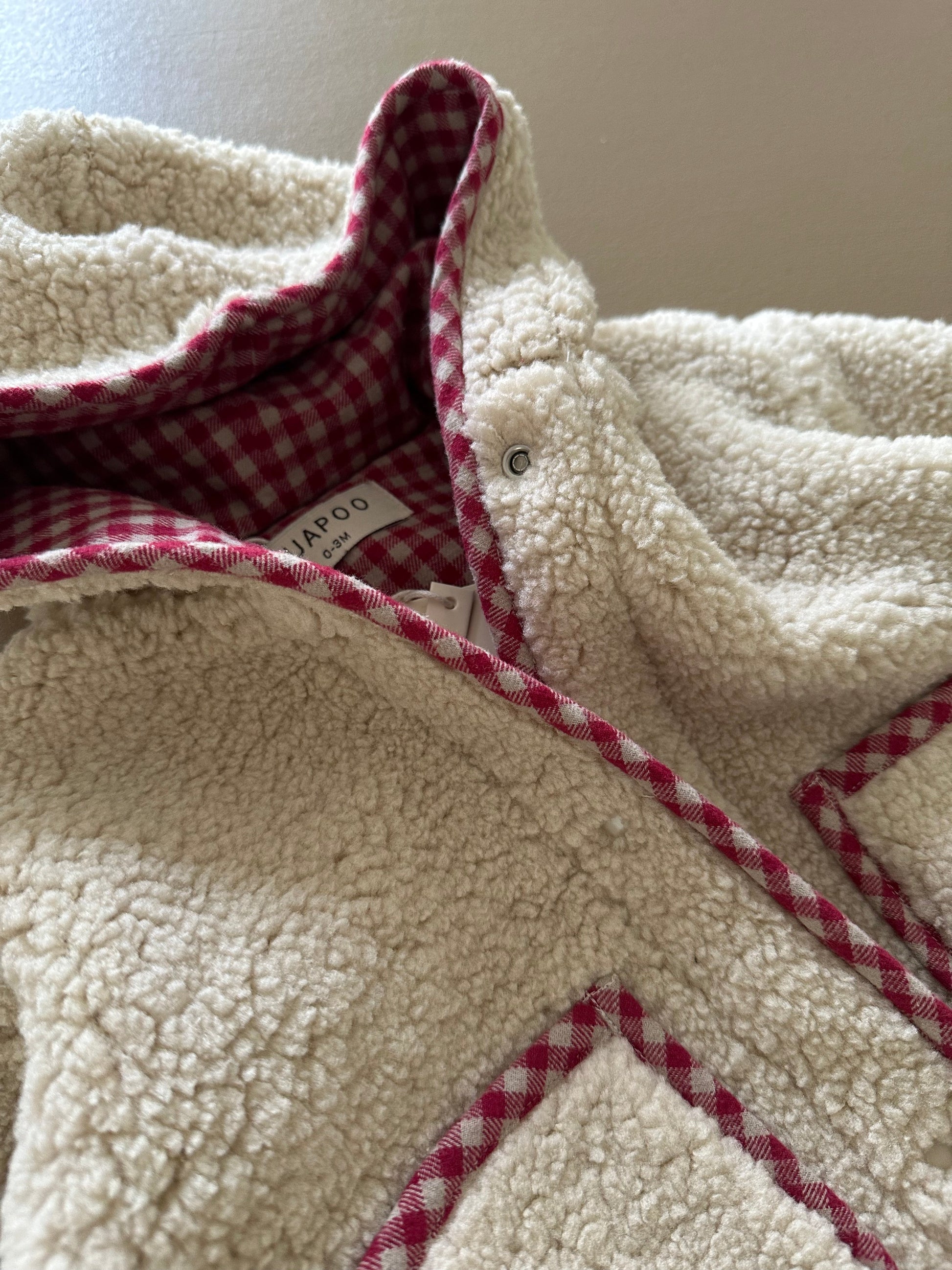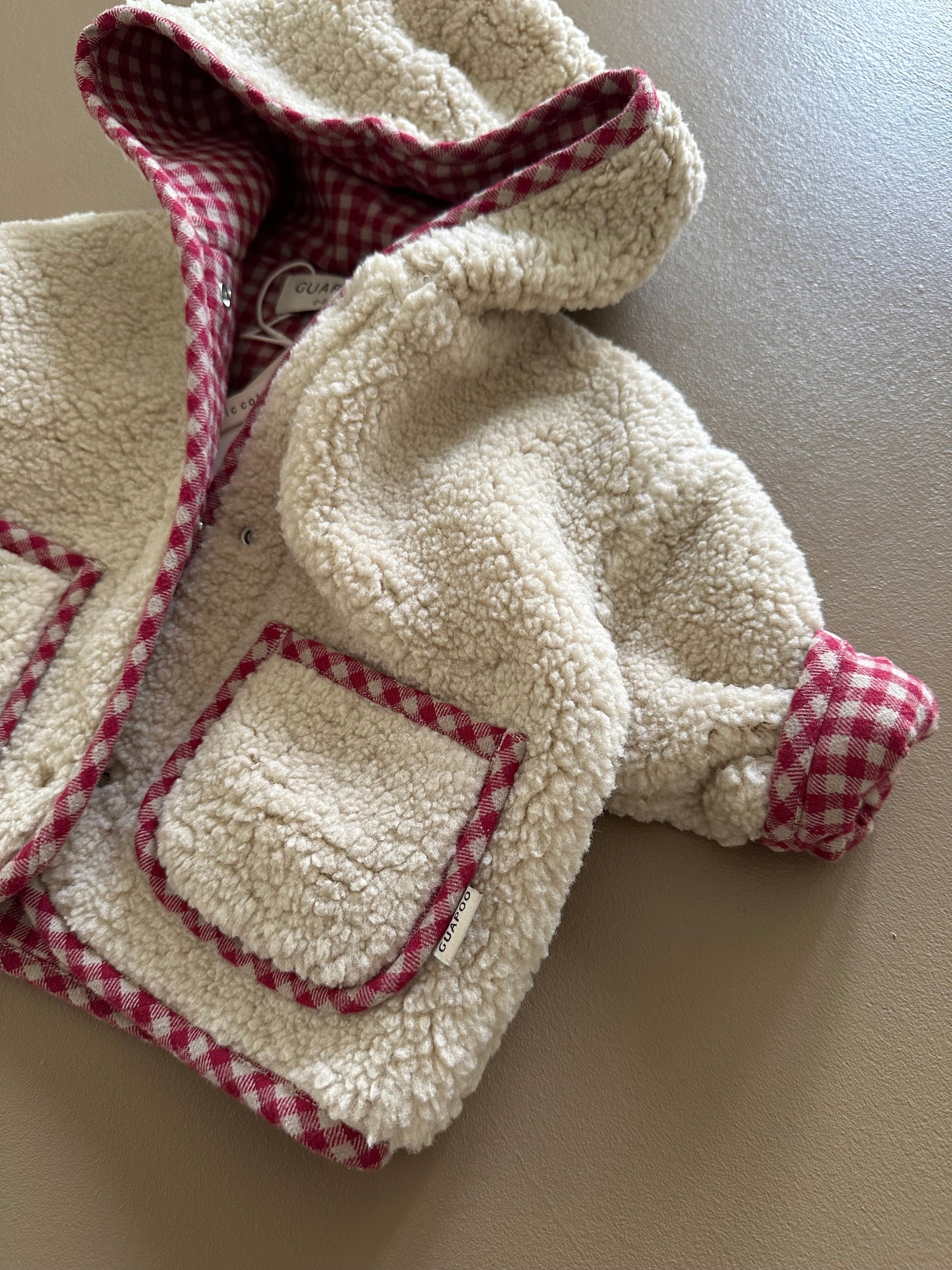 Doppelter Spaß in einer Jacke! Diese kuschelige Wendejacke mit Kapuze ist das perfekte Begleiter für dein Baby und Kleinkind. Flauschiges Teddy-Fleece auf der einen Seite trifft auf gemütliche karierte Baumwolle auf der anderen – einfach umdrehen und schon hat dein Liebling einen neuen Look. Die praktische Kapuze sorgt für extra Wärme und Geborgenheit. Zwei Jacken in einer – clever und vielseitig!