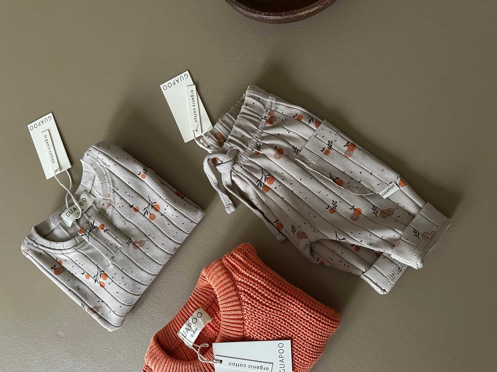 Diese stylischen Rib Leggings mit süßem Mini Clementinen-Print bringen frischen Schwung in deinen Look. Zwei praktische Seitentaschen sorgen für Komfort und Funktionalität, während die weiche Biobaumwolle ein angenehmes Tragegefühl garantiert. Kombiniere sie mit dem passenden Longsleeve für ein rundum gelungenes Outfit, das garantiert alle Blicke auf sich zieht!