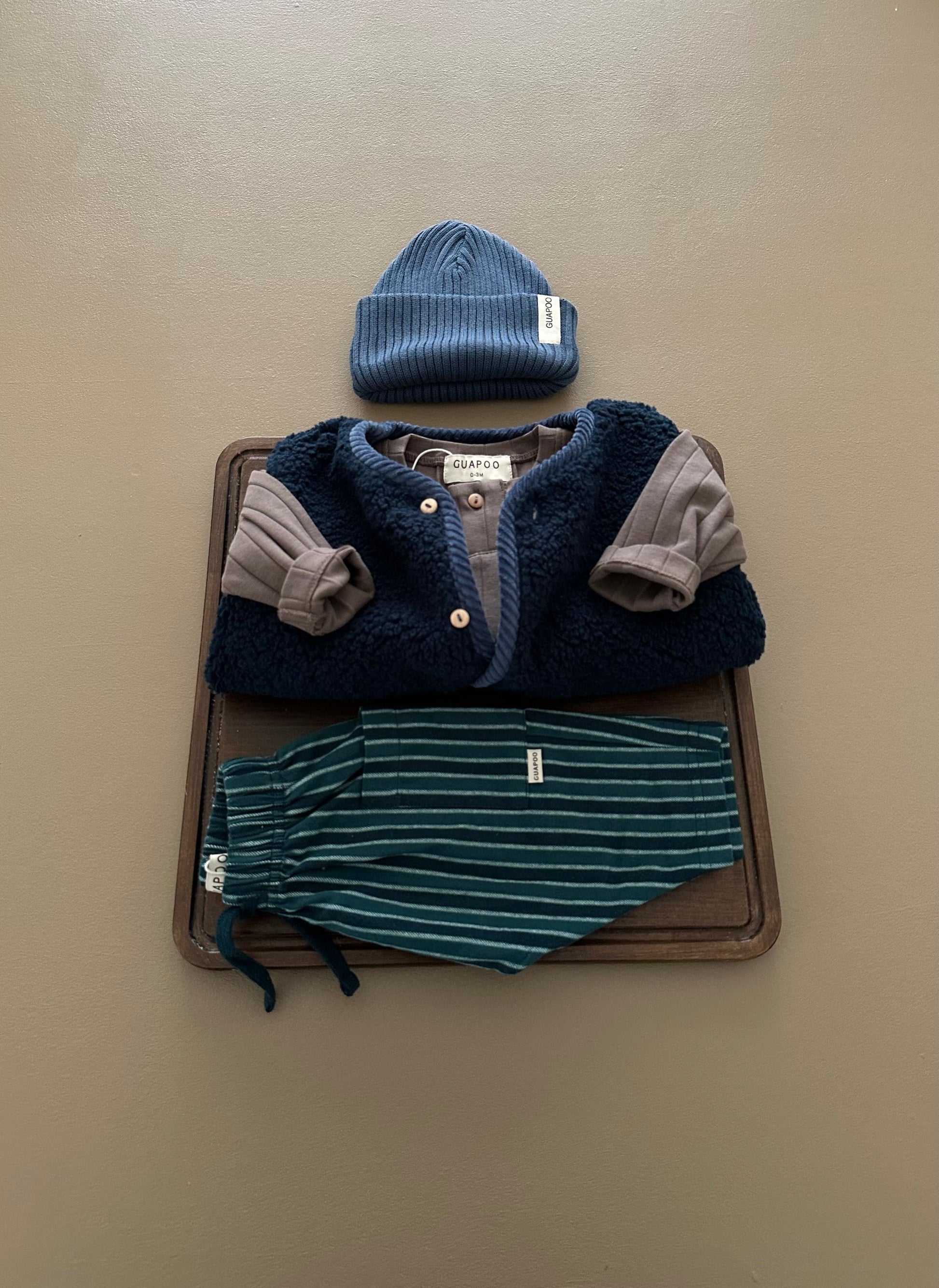 Die ROMEO PANTS DEEP SEA STRIPES sind die perfekte Wahl für kleine Abenteurer! Mit ihrem kuscheligen Twill-Stoff bieten sie höchsten Tragekomfort, während die tiefblaue Streifenoptik und die praktische Seitentasche für coole Details sorgen. Der Kordelzug am Bund sorgt für einen sicheren Sitz – so macht Spielen und Entdecken noch mehr Spaß! GOTS-zertifiziert und bereit für jede Jahreszeit.