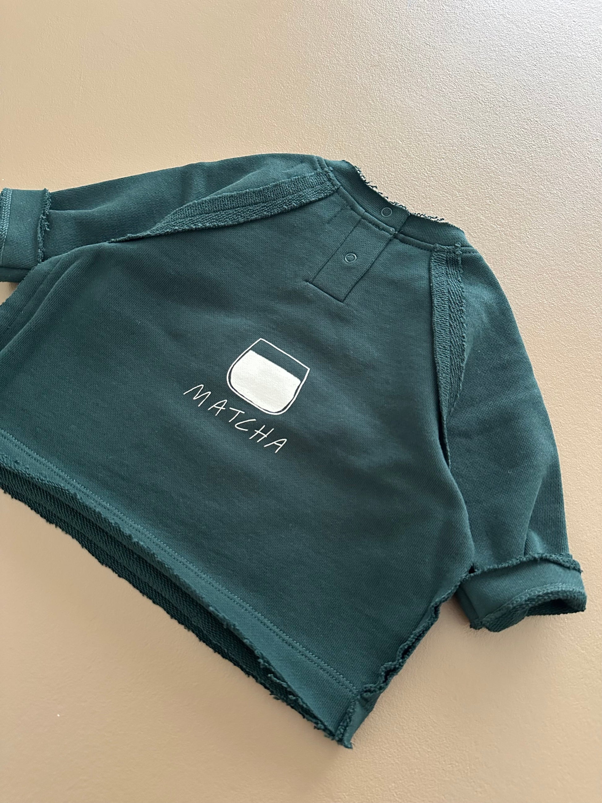 Dieses tropisch grüne Sweatshirt „Matcha“ begeistert mit einer süßen „I love you so matcha“-Stickerei und einem auffälligen Tassen-Print auf der Rückseite. Hergestellt aus weicher Bio-Baumwolle, fühlt es sich angenehm auf der Haut deines Kindes an. Stylisch und bequem – ein echtes Must-have für jeden Kinderschrank!