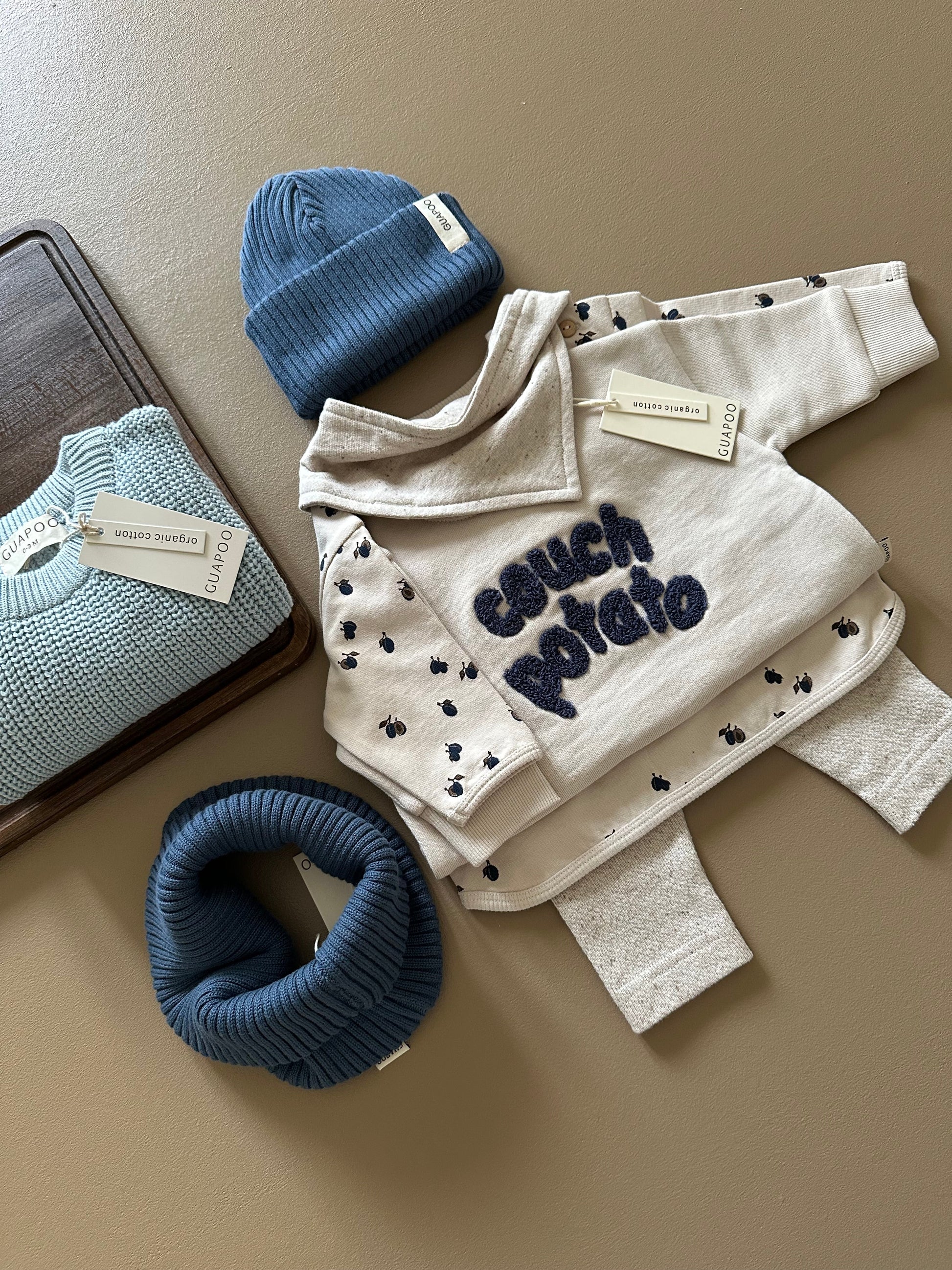 Dieses stylische Sweatshirt mit dem süßen Mini-Pflaumen-Print ist ein echter Hingucker! Innen flauschig angeraut, fühlt es sich superweich auf der Haut an – perfekt für kleine Entdecker. Zwei kleine Holzknöpfe oben machen das An- und Ausziehen zum Kinderspiel. Kombiniere es mit den passenden Leggings aus Biobaumwolle für den perfekten, gemütlichen Look. Kinder werden es lieben!
